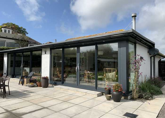 Modarc were recommended to the clients by a local estate agent to create a modern extension to the rear of an existing bungalow in Lyme Regis, Dorset. The bungalow had not been touch for a number of years, but boasted a south facing rear garden and stunning views across the Lyme Bay around the Jurassic Coastline. At Modarc we gained planning permission for a stunning rear extension, that extended across the full width of the bungalow, with picture windows to give different vantage points to the view. The open plan space has direct access on to the landscaped rear garden.
