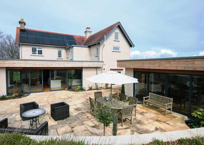 This lovely old Arts and Crafts house in Lyme Regis was in need of some TLC throughout, however it also needed accommodation improvements to bring the ground floor in line with modern living. The brief given to Modarc was to create a modern extension, to set it apart from the original house. This single storey flat roof extension, gave my clients a stunning Kitchen / Dining Space with access on to a patio area which linked on to the new Ancillary Building. This building was designed to be similar in style and accommodated an annex along with a single garage and a games room. The planning permission was granted first time and the transformation has been very successful.